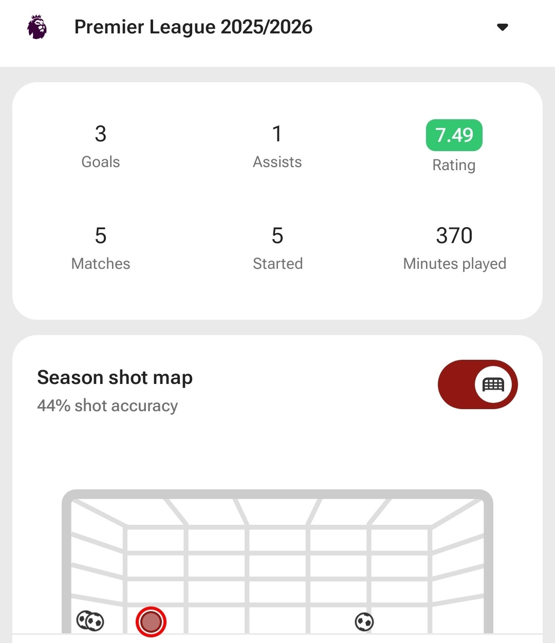 He’s scored all 5 goals from 10 shots and 2.1 XG using his RIGHT foot.