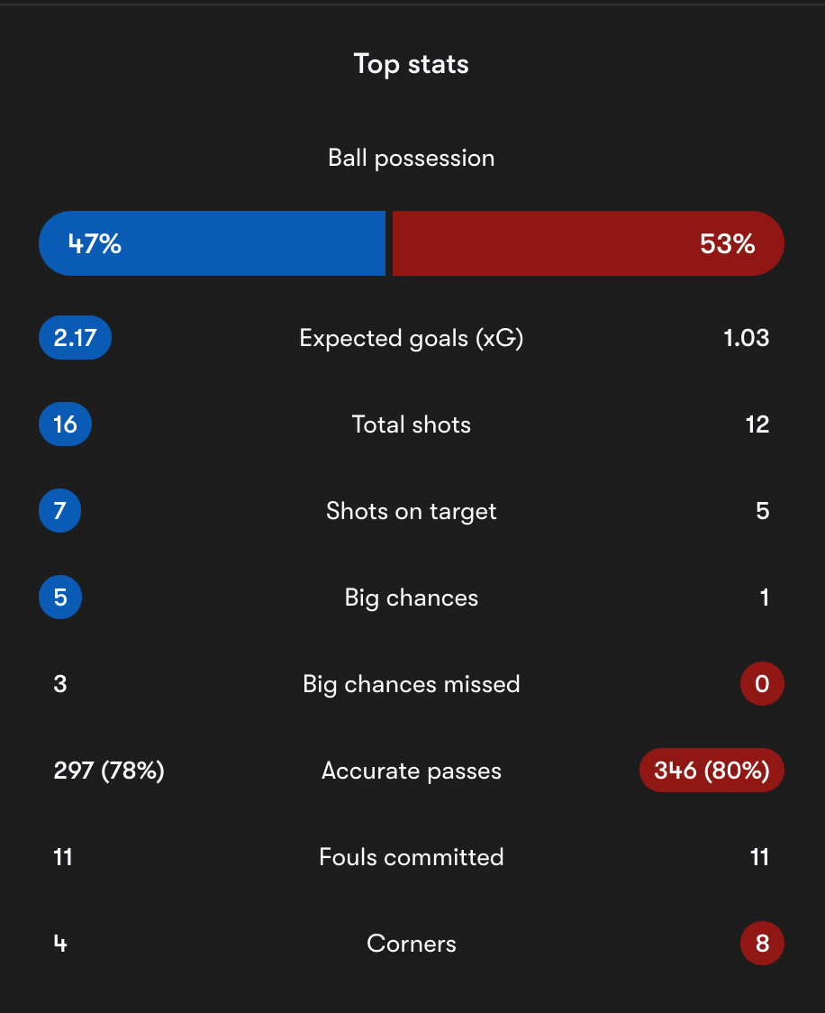 Brighton generated an expected goals figure of 2.17, more than double Liverpool’s 1.03. That disparity alone tells you where the match was truly played. Liverpool may have had more of the ball, but Brighton had the better chances, the more dangerous moments, and the clearer attacking identity.
