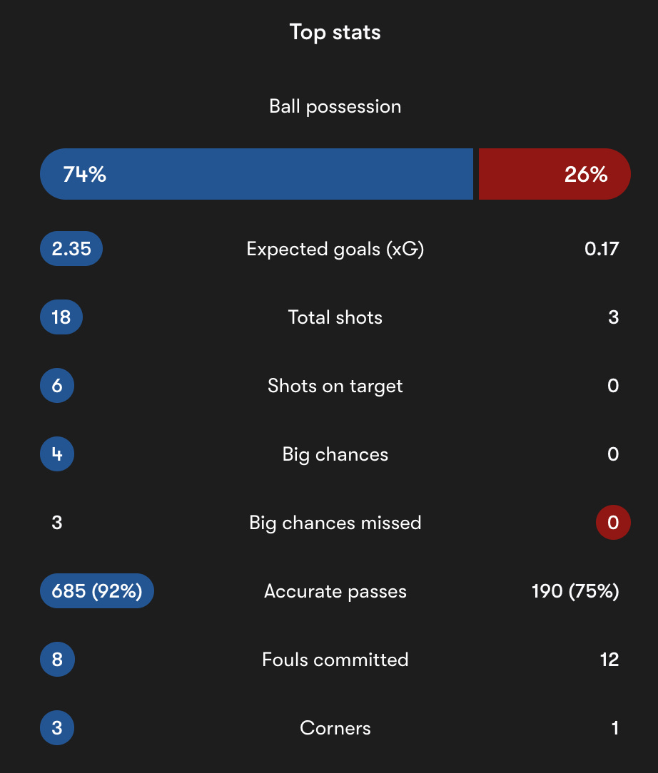 The raw numbers are damning. PSG recorded 74% possession, produced 2.35 expected goals to Liverpool’s 0.17, and fired 18 shots to Liverpool’s 3. That alone frames the match as one sided, but it is the nature of that dominance that concerns me most.