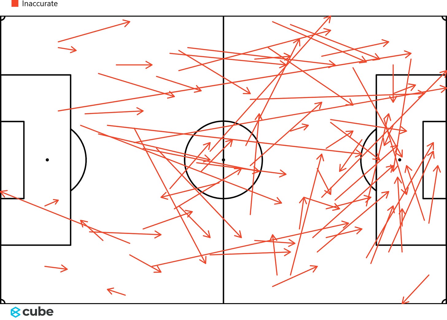 The first graphic of Liverpool’s inaccurate passes illustrates how often mistakes crept into the build-up. Without Trent Alexander-Arnold, now in Madrid, there is no single orchestrator dropping into midfield to dictate the rhythm. Instead, players like Ibrahima Konaté were asked to shoulder responsibility, and his errant touches and misplaced passes reflected the adjustment period.