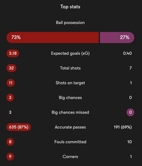 This was not about effort or intent. It was about execution, clarity and ruthlessness. When a team posts 73% possession, generates 3.18 expected goals, attempts 32 shots and completes 635 passes at 87% accuracy, there should be no debate at full time. Yet Liverpool found themselves leaving points on the pitch again, reinforcing a growing concern about how dominance is being converted, or not converted, into wins.