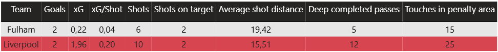 Statistical Analysis of Fulham 2-2 Liverpool from Craven Cottage.