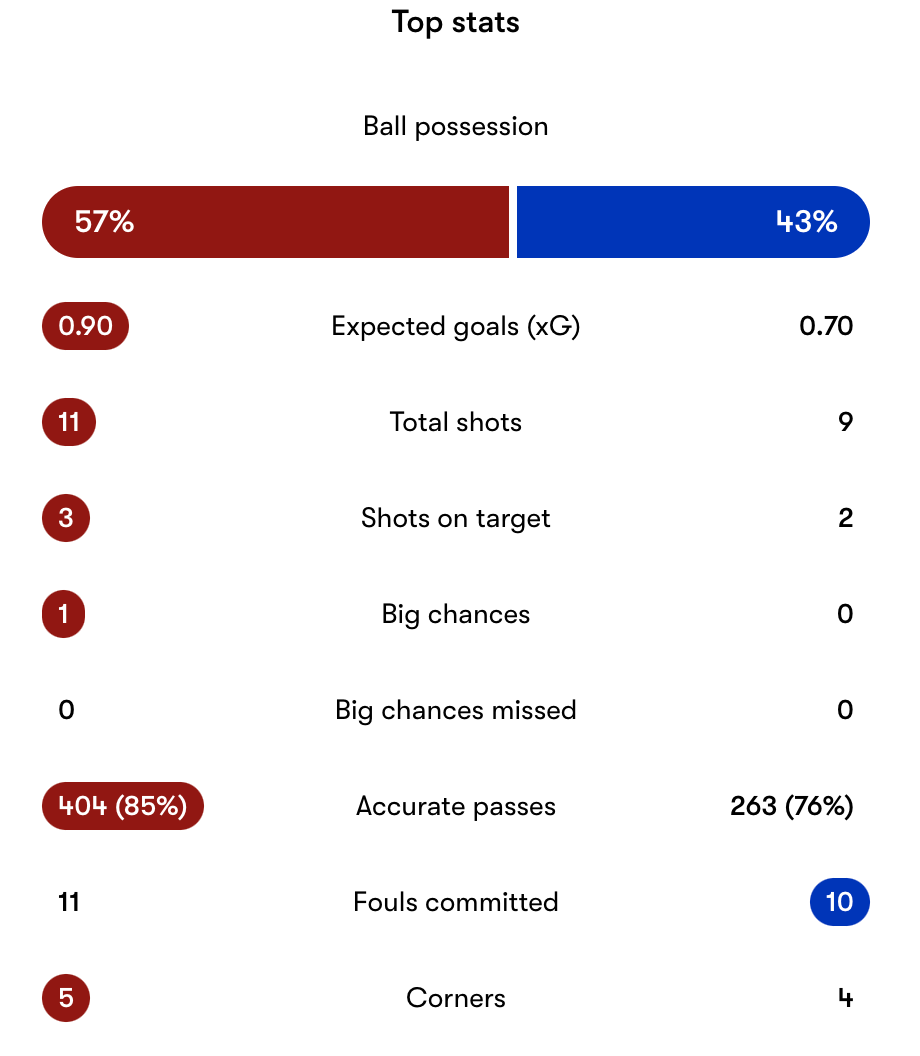 Liverpool had 57% of the ball, 11 shots to Everton’s 9, and edged the xG 0.90 to 0.70. It was tight. There were only three shots on target for Liverpool and two for Everton. But Slot’s side were always the ones shaping the game.