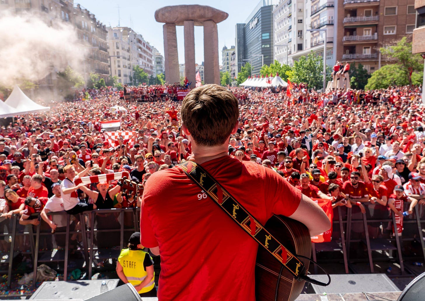 He played on official tours, sang in fan zones before European finals, and found himself front and centre of the Red wave in Madrid in 2019. There he was, guitar in hand, voice cracking, heart full, singing to 60,000 Reds on the eve of a sixth European Cup. It wasn’t a performance, it was a communion. And in that moment, Jamie Webster became part of Liverpool folklore.