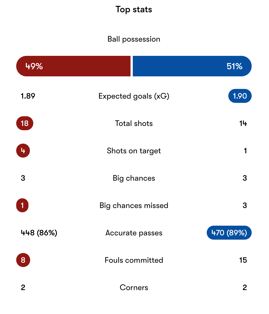 What followed was a match where Liverpool edged the decisive moments, even if the underlying numbers suggest something closer.